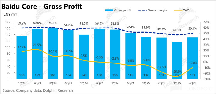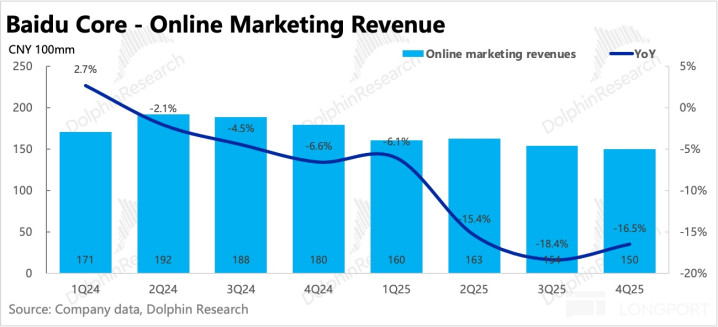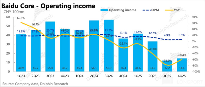 (2)AI 独揽(包括百度文库、百度网盘和数字职工等产物):环比捏平,料到网盘业务还有负担。