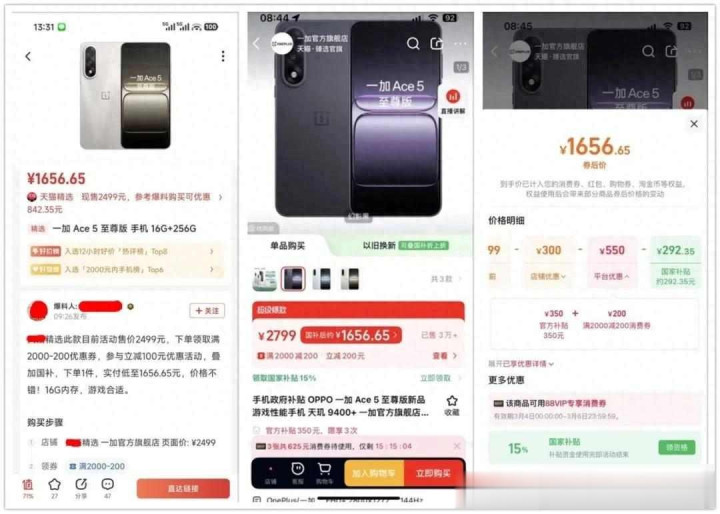 最近一加Ace5至尊版在天猫卖得异常低廉,16GB+256GB版块实付只需要1657元,这比它前年5月刚上市时的2799元少了1100多块,降幅超越四成,况且这个价钱比闲鱼上同成立的二手手机还低——二手多数卖1750到1800元,全新反而更低廉。