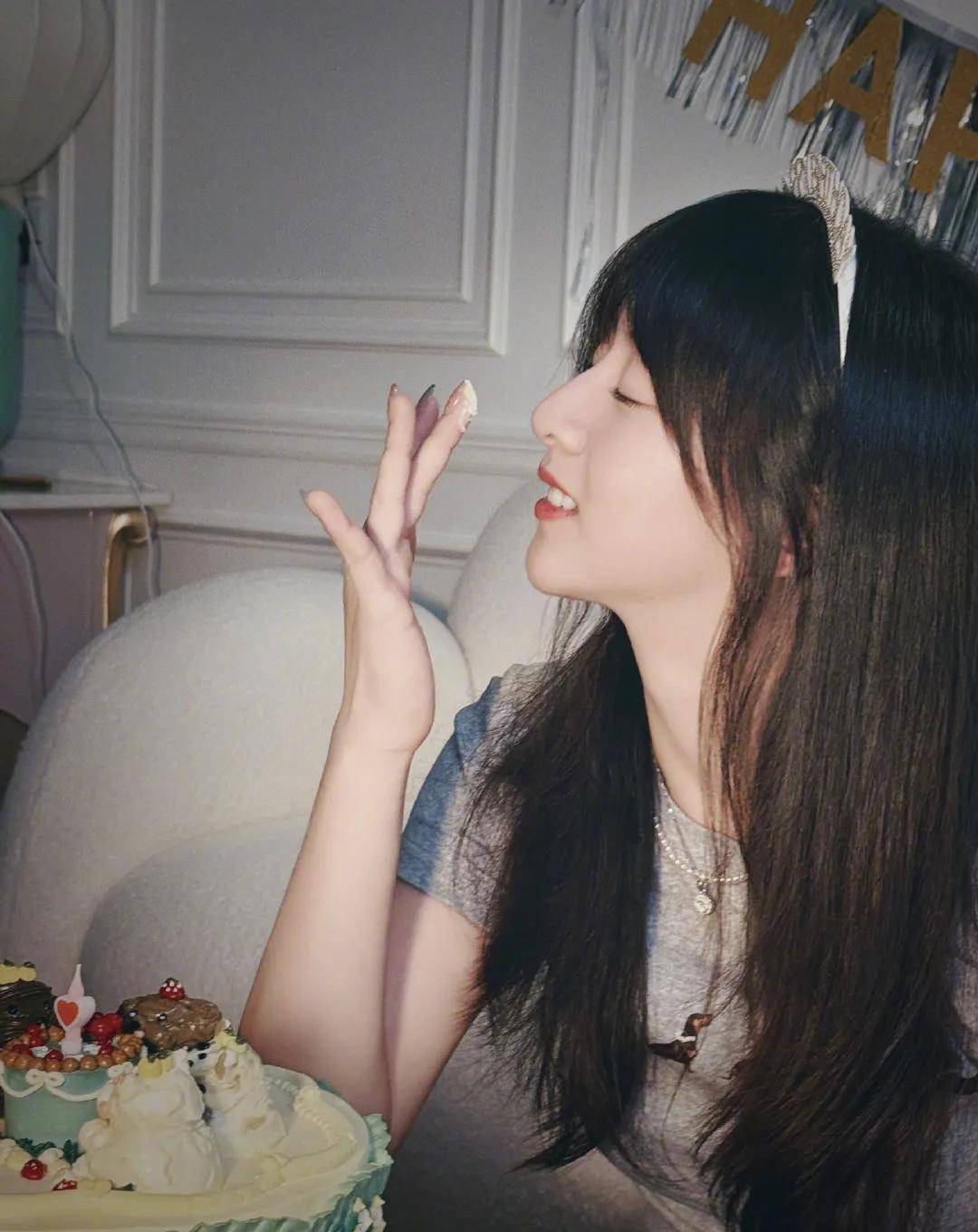 此次成年礼,叶一茜晒出的另一组写照更让东谈主惊艳——森碟穿戴吊带白裙坐在蛋糕前许诺,