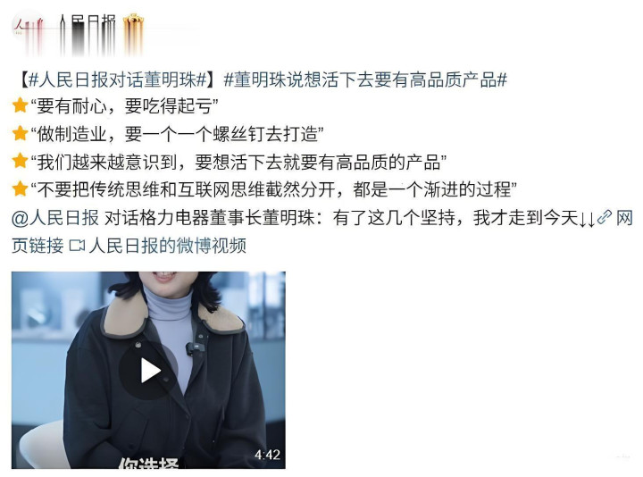 近日,格力“女王”董明珠再获国度专访,东说念主民日报亲身“点名”。采访中,董明珠大谈布局数控机床,暗示高端制造不成只靠入口,进攻此界限纯因国度需要,制造业地位举足轻重。