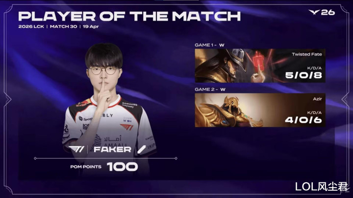 Faker两场0葬送拿MVP