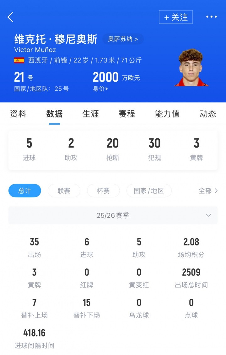 直播吧04月19日讯据西媒《寰宇体育报》报说念,巴萨对奥萨苏纳时尚穆尼奥斯感风趣,在球员服从于卡斯蒂亚时就运行测验。