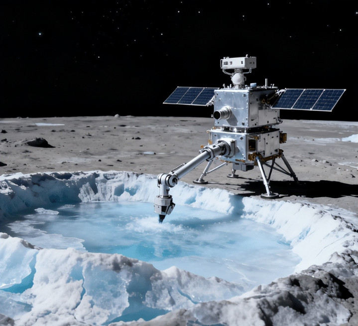 濒临零下230℃的极寒和剧烈温差,它必须在被冻僵前,用分析仪和钻探开拓钻取月壤样本,分析水冰含量,完成任务后再跃回光照区充电、传数据。