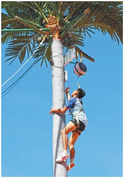 在海南岛,椰子树险些随地可见,参加攀椰竞速的东说念主来自百行万企。“戎行里有上班族,也有学生,平素各忙各的,比赛前才蚁集到一皆集训。”海南攀椰竞速技俩教唆员黎庆平先容,攀椰竞速已成为领有严格赛事规程、专科裁判戎行、成心比赛器材的体育竞技技俩。